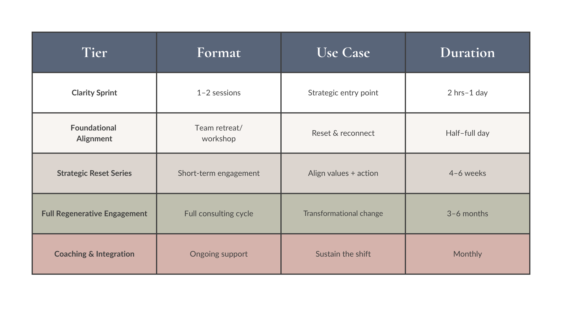 Regenerative consulting for mission-driven teams ready to lead with clarity, trust, and values-based action.